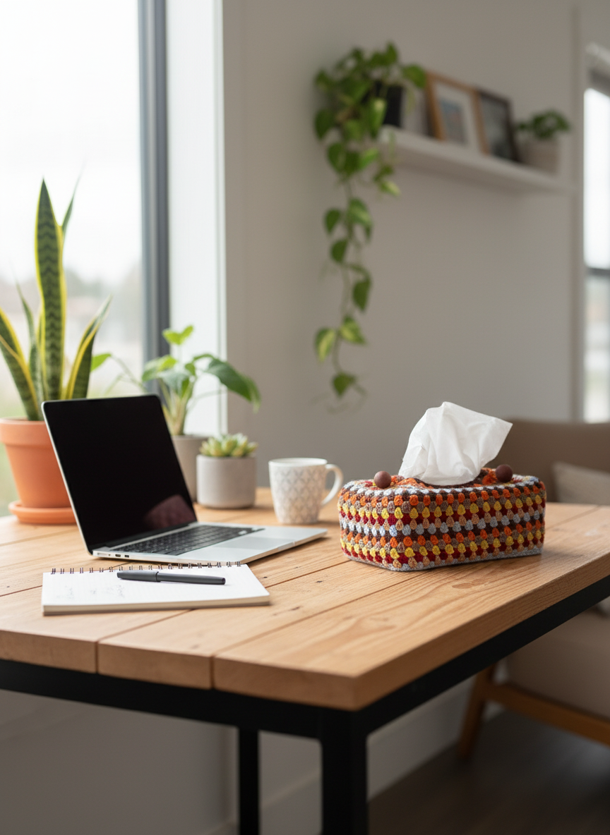 Multicolor Crochet Tissue Box Cover - Handcrafted Home Elegance