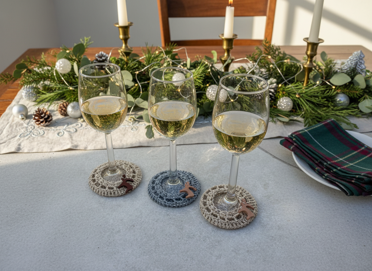 Three Wine Glass Coasters with Deer Charms Christmas Lifestyle